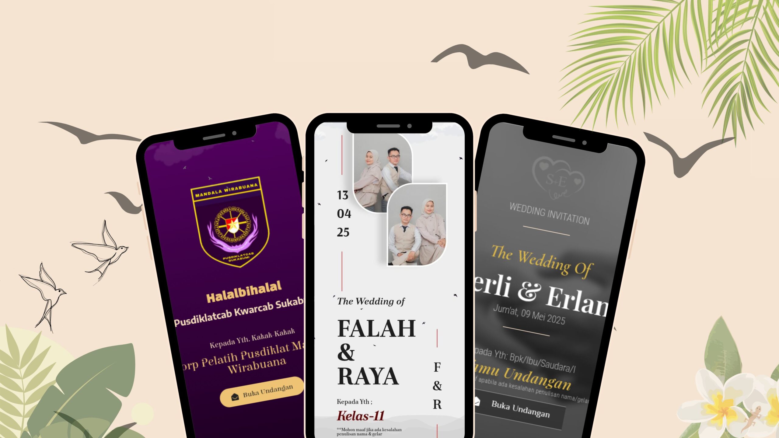 Tersedia beragam pilihan aneka template undangan digital yang menarik & kekinian.